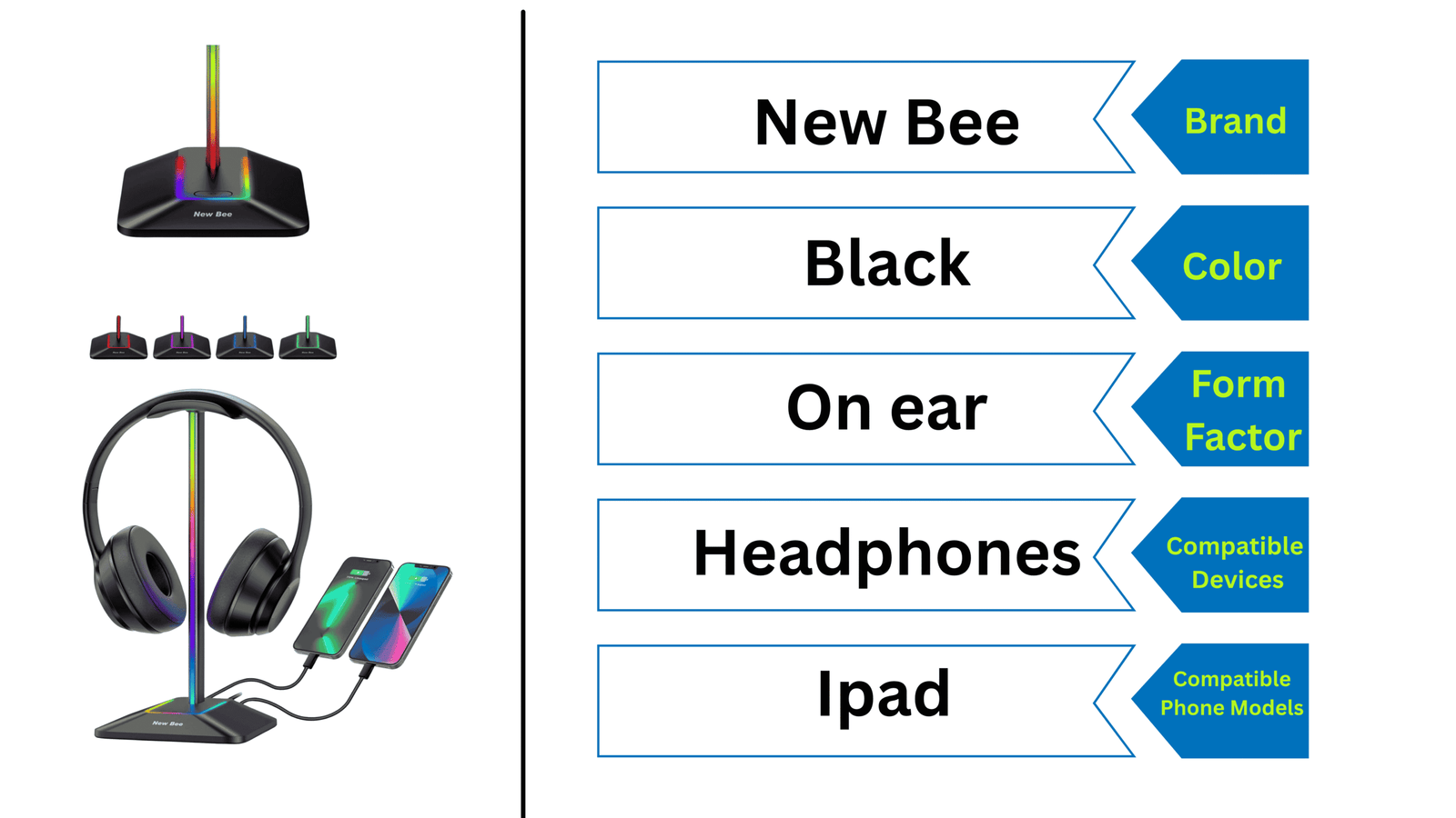 - 【RGB Lighting】New bee RGB headset stand features 7 colors of lighting modes, the cool visual effect can create any atmos…